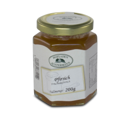 Pfirsich 48%, Zucker, Säuerungsmittel: Zitronensäure, Geliermittel: Pektien, gehärtetes Sonnenblumenöl